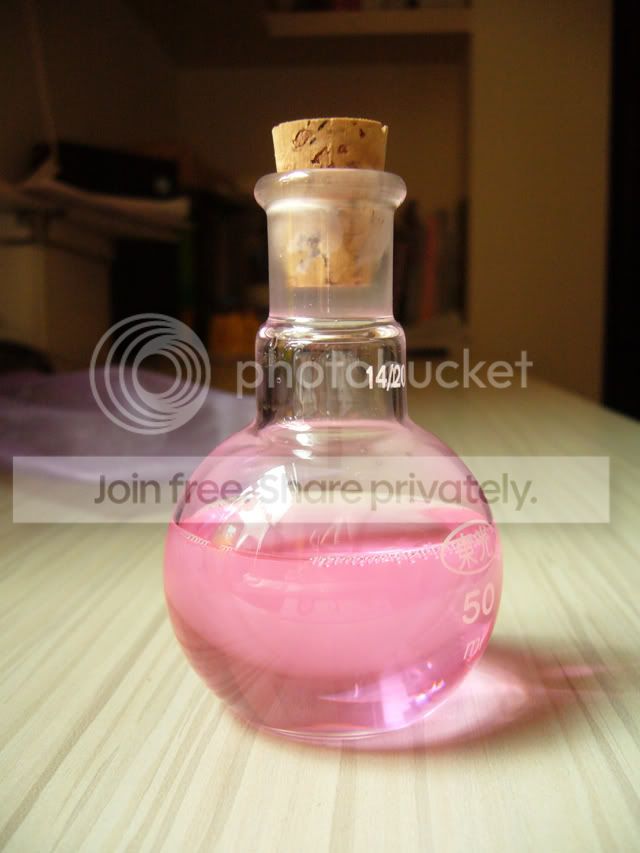 我們買了玻璃製的圓底燒瓶和軟木塞